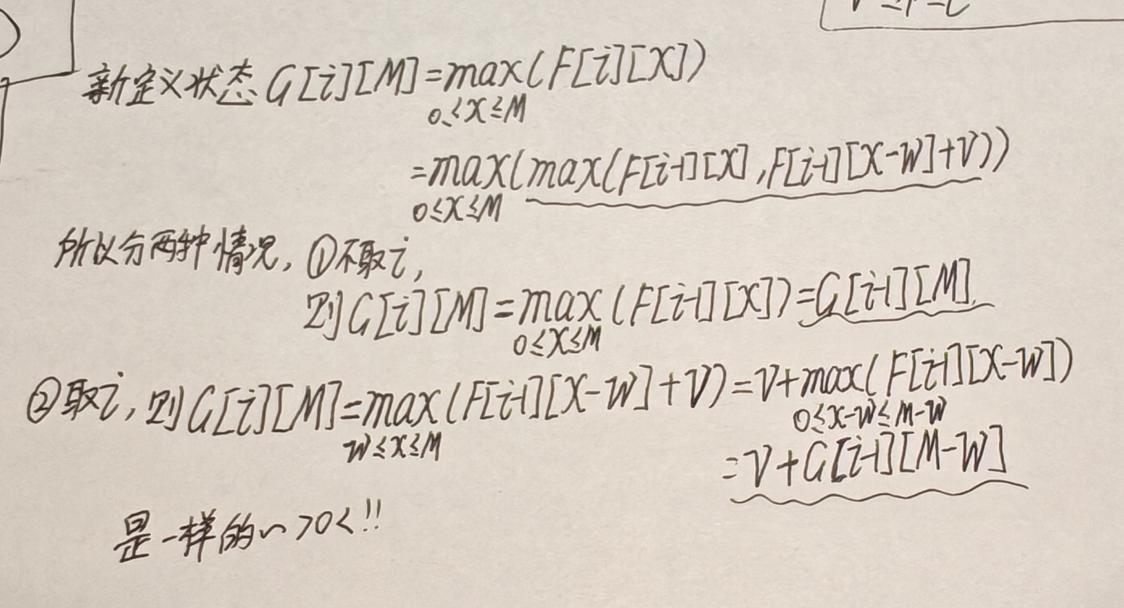 很容易理解,举个例子,和 <= 5,但当前物品重量为3,两边同时减去3,得到和 - 3 <= 5 - 3,即和 <= 2