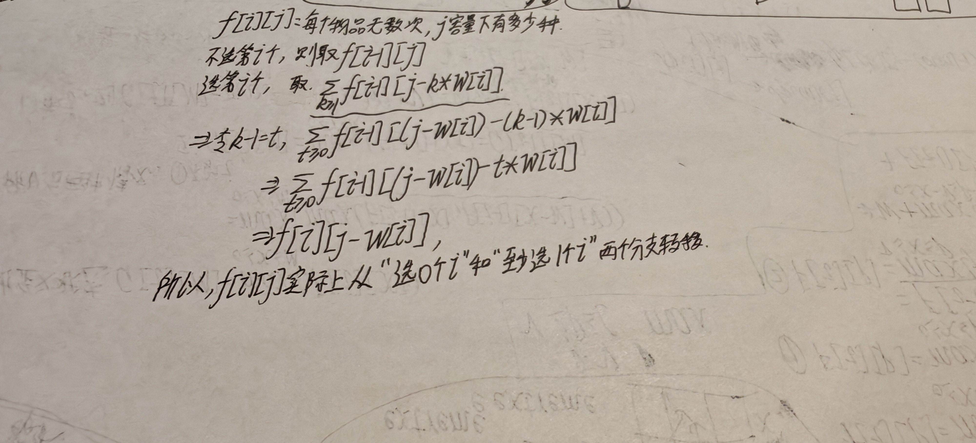 我先证明一下完全背包的转移本质,数学上的严谨推导